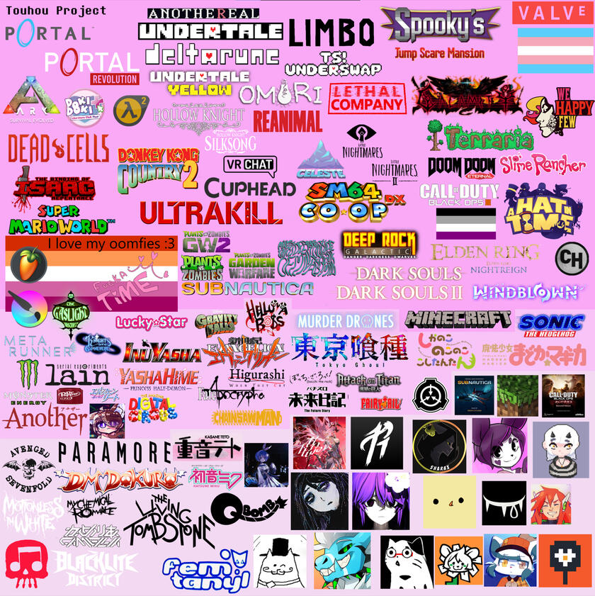 bottom is an image with most of my interests, and below that has art of my fursona ^w^